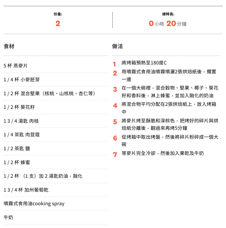 鹽分等等。這次加州葡萄乾所提供的食譜,帶大家自己在家裡動手烤堅果麥片!自己的做好處就是可以